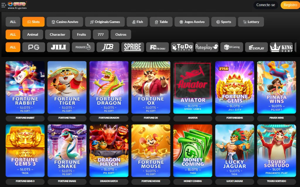 Milhares de títulos de provedores como PG SOFT, JILI e Pragmatic Play, incluindo slots clássicos e vídeos modernos com rodadas grátis.